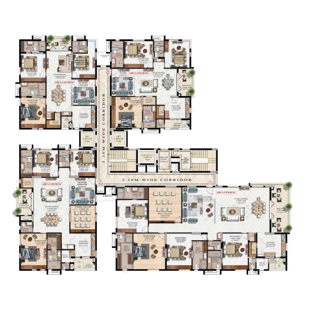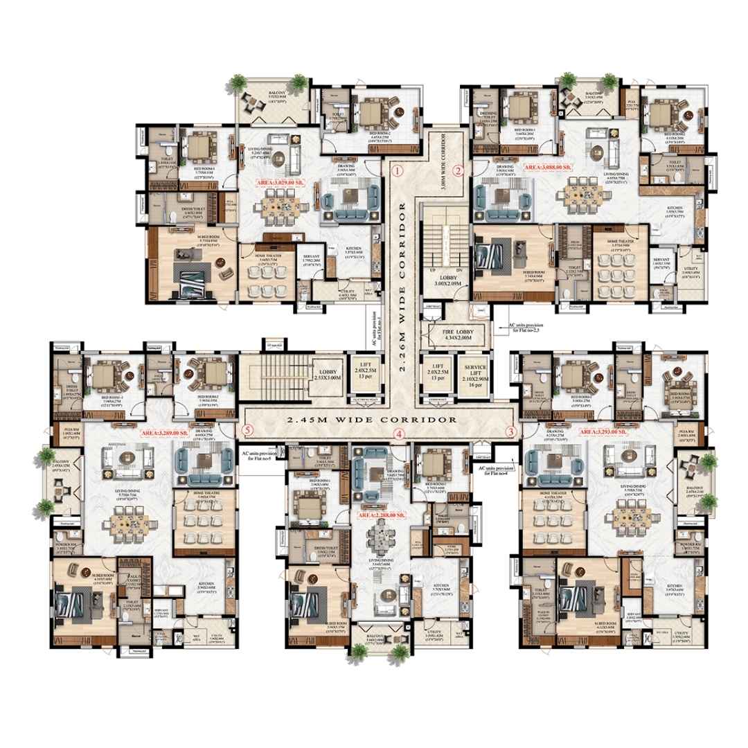 Bliss offers meticulously designed 3 BHK and 4 BHK apartments, ranging from 2288 sq. ft. to 5078 sq. ft., ensuring comfort, luxury, and functionality.