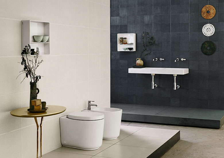 BATH ROOMS : Imported / Designer tile dado up to Lintel height